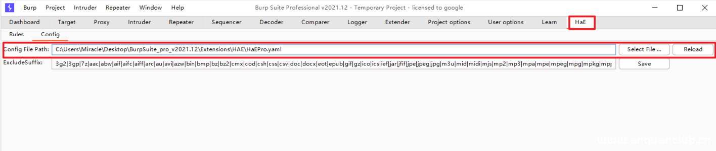 此时才把插件导入进来,需要配置你的HAE正则
